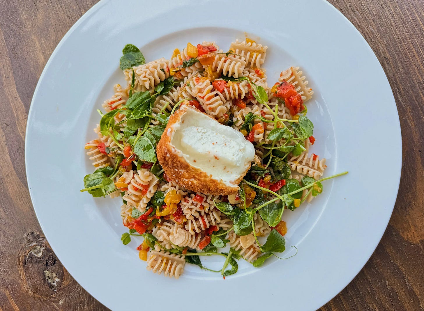 Enjoying the watercress season? Us too. Our friends at Northern Pasta Co suggest lacing it through their Radiatori salad with some charred pepper, then break a deep fried, oozy goats cheese over the top. Yum.