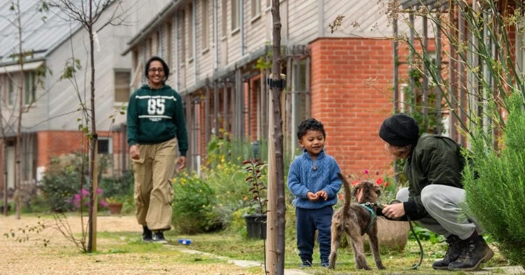 As well as having fantastic planet-positive credentials â including a renewable energy system, group growing and meals and shared electric transport â this way of living encourages more social interaction, which has benefits for all ages, from young families to the elderly. âItâs showing people do want to care about each other, they do crave community, social interaction,â the projectâs architect, Sam Goss, told the BBC. âIt is possible to achieve better environmental standards when the people themselves who are living in homes design them so they are more aspirational.â