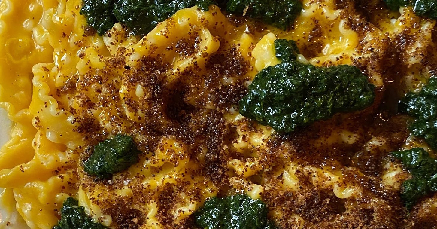 This speedy recipe for squash pasta, green salsa and crispy garlicky bread crumbs comes from Rosie Kellettâs brilliant Substack, The Late Plate. Itâs a divine autumnal dish, ideal if you love squash but hate the messy prep usually involved and, of course, itâs perfect for sharing.