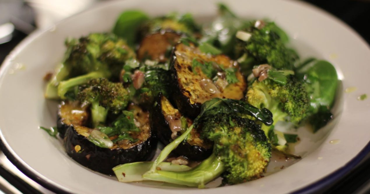 This is one of Hannahās all-time favourite salads, from the book A Lot On Her Plate by food writer Rosie Birkett. The warm roasted aubergine and broccoli feel just right for this time of year, and the tangy dressing features honey, lemon, tabasco and anchovies. Irresistible.