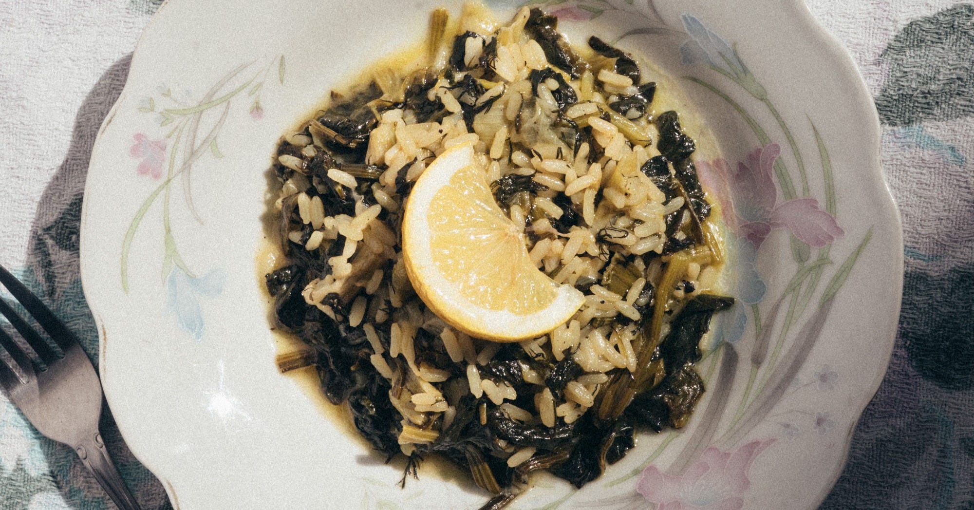 Taken from Anastasia’s new book MEDITERRANEA, this super easy dish is a kind of Greek spinach risotto. The vegetables are the star of the show and it’s much less fussy to make than a traditional Italian risotto. Serve it with a slab of feta, a wedge of zesty lemon, an extra drizzle of olive oil and plenty of crusty bread.